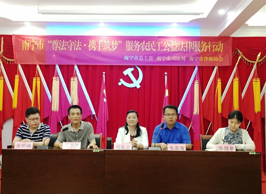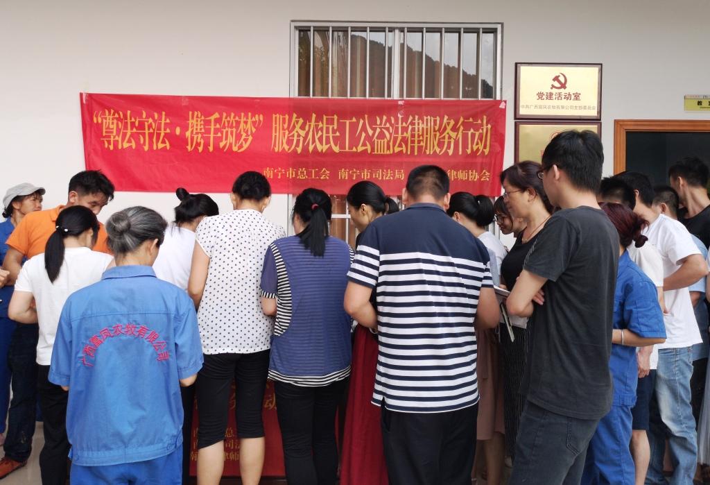 4月26日,南宁市总工会党组成员、副主席刘东方率领公益法律服务分队一行8人,来到草莓视频下载网址集团总部,开展2019“尊法守法•携手筑梦”服务农民工公益法律服务讲座。