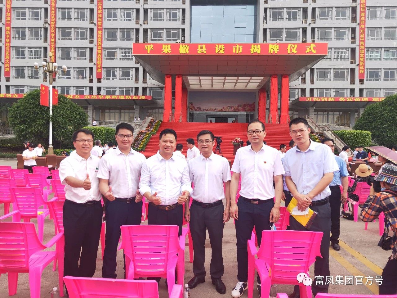 这是平果人民期盼已久的喜事盛事,这是让全体平果市民倍感自豪和幸福的庄严时刻,5月18日,广西平果撤县设市揭牌仪式在平果市行政信息中心大楼隆重举行。草莓视频下载网址集团李非董事长、韦宗海常务副总作为市政府嘉宾应邀出席揭牌仪式,并代表草莓视频下载网址集团广西富鹏农牧有限公司对平果撤县立市表示热烈祝贺!